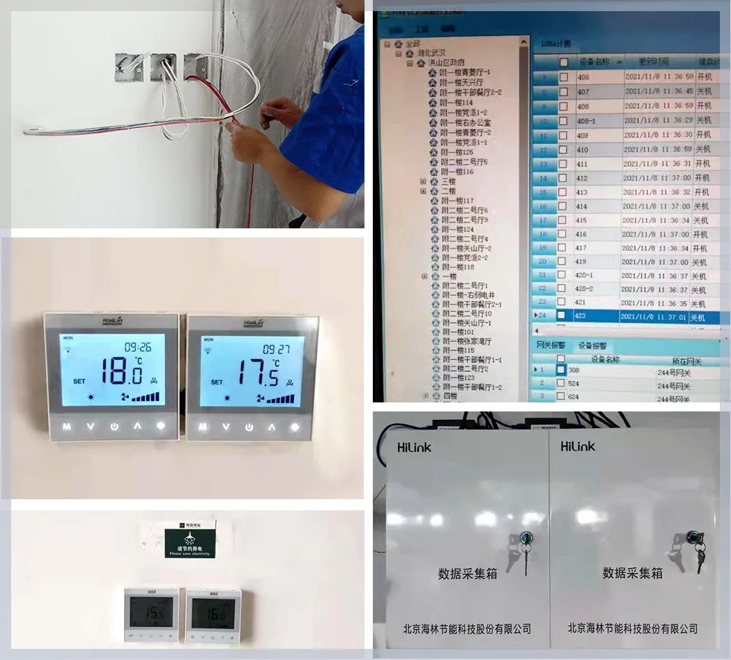而無線聯網溫控器作為整個系統的末端應用產品,為了能夠更好地給用戶一個安全、舒適、便捷的體驗。海林自控通過對如皋市人民政府中風盤末端溫控器等控制設備進行集成管控,搭建智能化管理系統,對中央空調末端風盤設備實施全面監測,對室內溫度、設置溫度、風速、模式等參數進行采集、分析,控制樓宇設備運行,實現辦公樓的綠色、節能、智能運行。