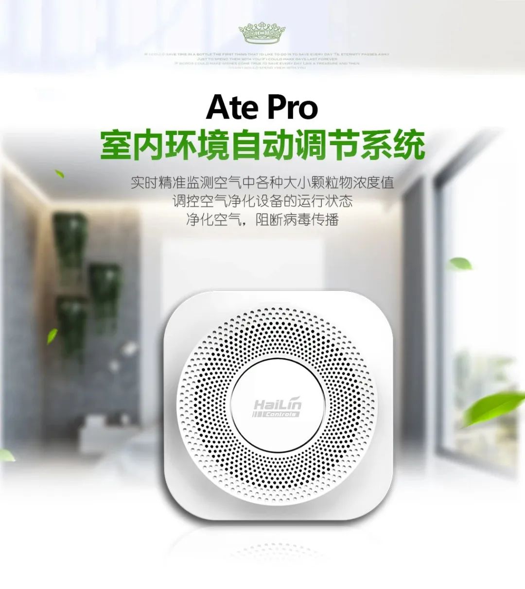 Ate Pro與Ace智能控制面板連接,Ate Pro實時監測環境參數,Ace智能控制面板根據數據精準調控新風凈化設備運行,保證室內環境健康。同時系統將采集到的環境數據及設備運行狀態實時顯示在智能面板上,使用戶對當前室內環境健康一目了然。