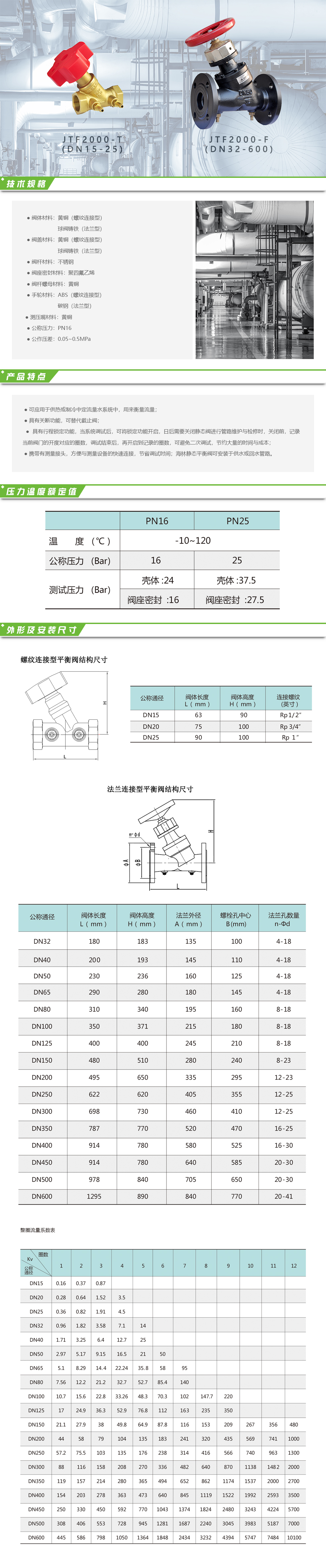 JTF2000 系列靜態平衡閥是一種靜態水力工況平衡用閥,它 具有等百分比的流量特性,適用于集中量調節,集中質調節及分 階段改變流量的量調節系統,當系統流量發生變化時,安裝了數 字鎖定平衡閥的各支路,各用戶的流量會按比例增大或減小,保 持初調節時的流量分配方案。