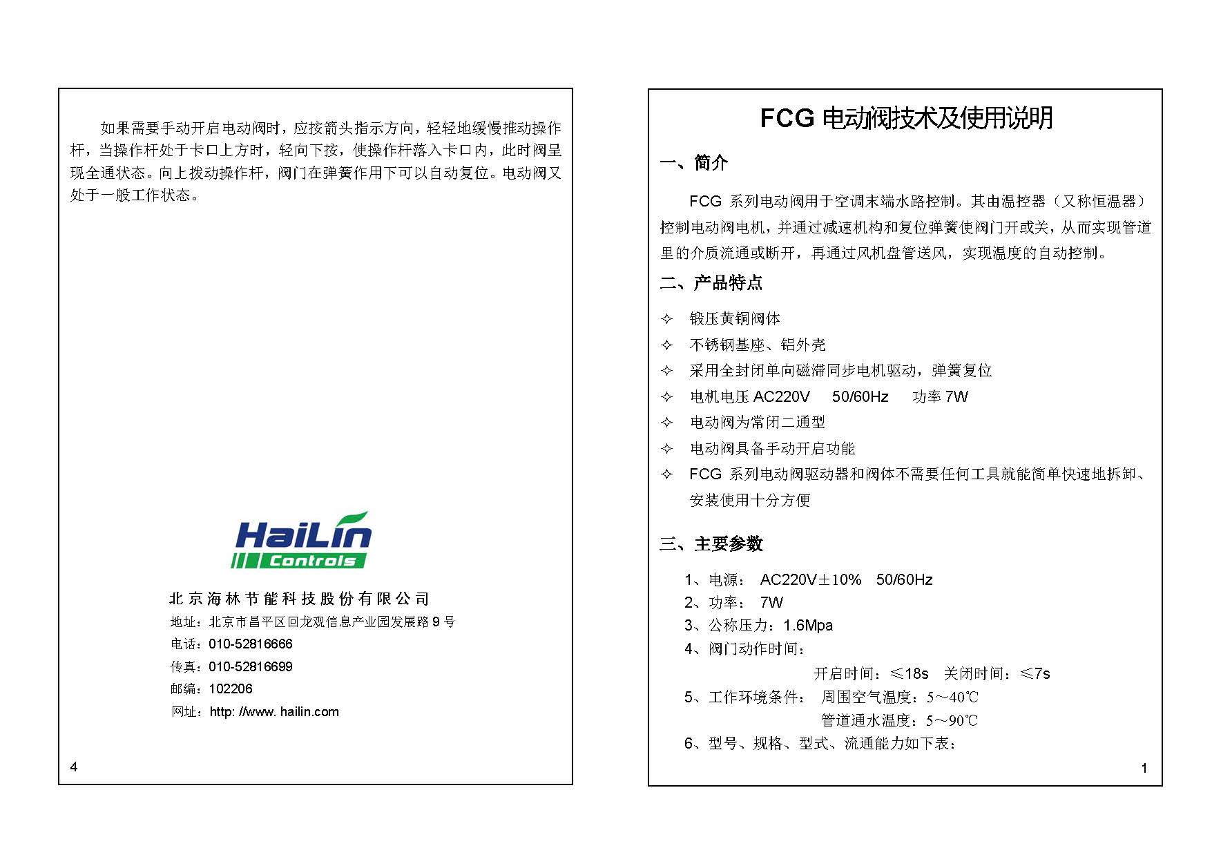 FCG 系列電動閥用于空調末端水路控制。其由溫控器(又稱恒溫器)控制電動閥電機,并通過減速機構和復位彈簧使閥門開或關,從而實現管道里的介質流通或斷開,再通過風機盤管送風,實現溫度的自動控制。