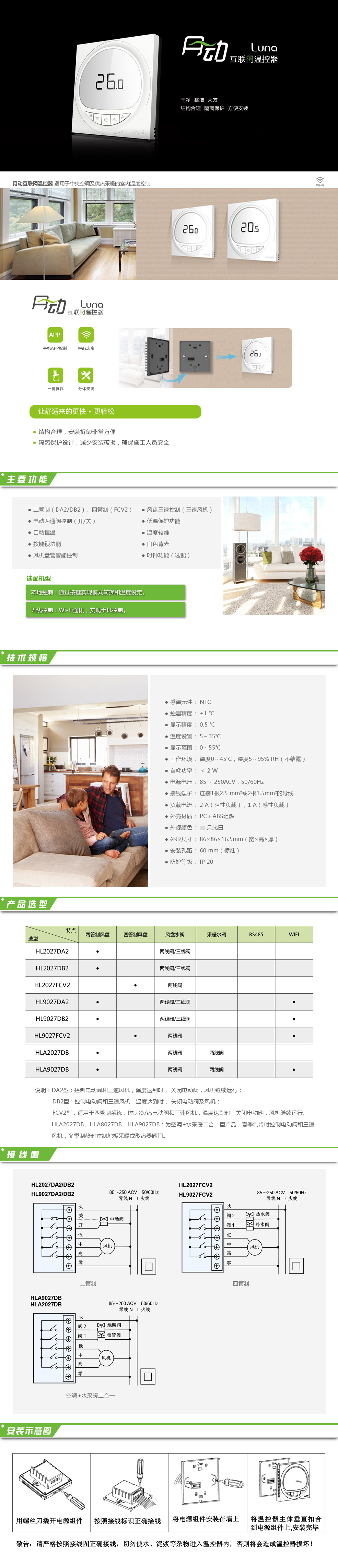 月動空調溫控器包括“本地控制、有線控制、無線控制”三種類型,適用于控制中央空調風機盤管系統或風管道系統,自動調節室內溫度。外觀干凈整潔大方,結構合理極易拆裝。人性化隔離保護設計防止安裝破損,保證施工人員安全。