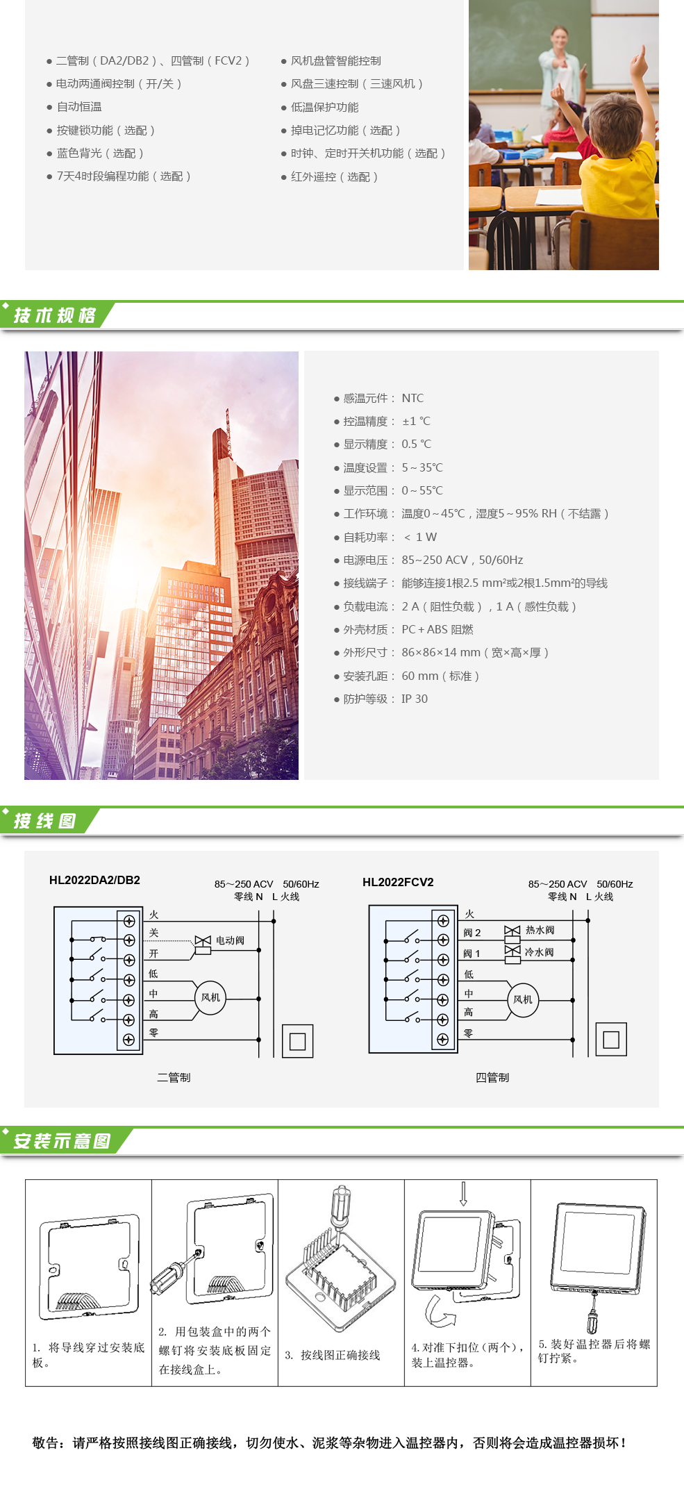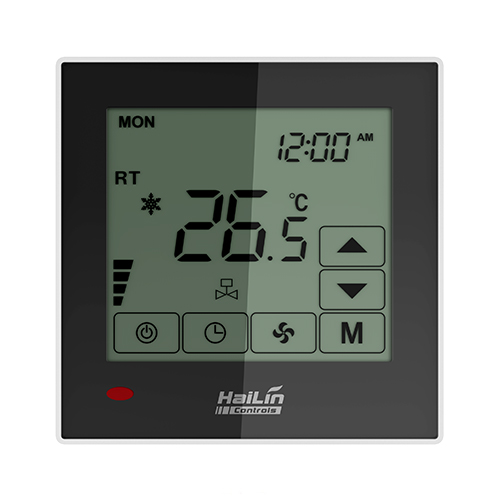 觸摸屏溫控器HL2022適用于中央空調風機盤管系統或風管道系統的室內溫度控制,通過室內溫度和設定溫度相比較,對空調系統末端的風機盤管、電動閥或電動球閥進行開啟和關閉控制,達到調節室內溫度、舒適及節能的目的。